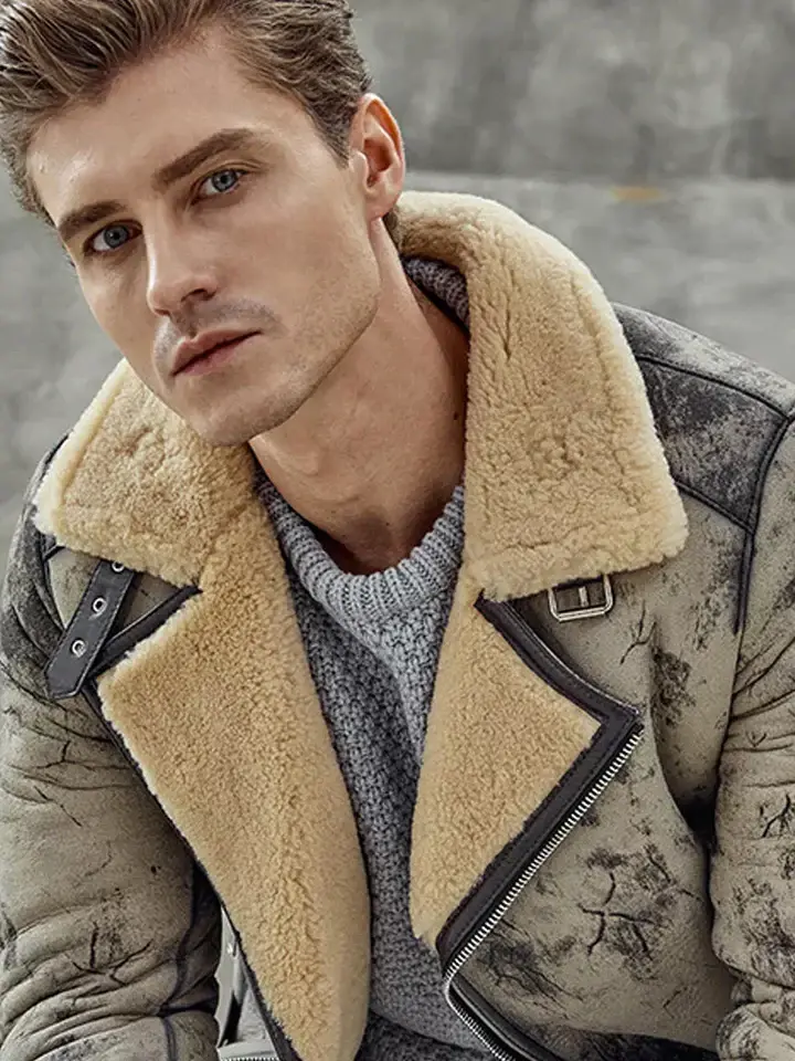 Elevate your winter style with this premium B3 aviator shearling jacket, featuring a rugged distressed leather exterior and luxurious fur lining for ultimate warmth. Designed with a bold asymmetrical zipper closure, this vintage flight bomber coat exudes classic aviation style with a modern edge. Complete with adjustable waist belts, secure zippered pockets, and a thick shearling collar, this timeless pilot jacket is perfect for bikers, aviators, and leather enthusiasts looking for both fashion and function.