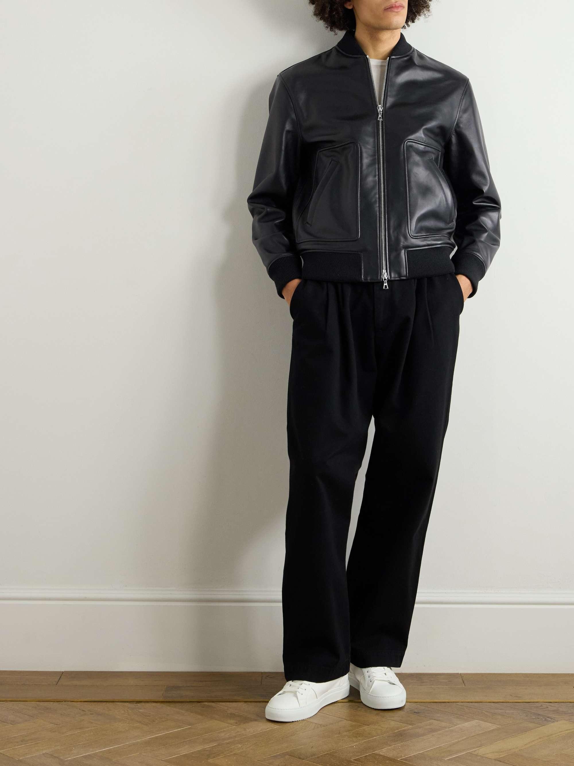 Elevate your wardrobe with this premium black leather bomber jacket for men, crafted from 100% genuine lambskin leather. Designed for both style and durability, this classic flight jacket features a sleek zip-up closure, ribbed cuffs, and a modern tailored fit. Whether you’re dressing up or going casual, this versatile leather jacket adds an effortlessly cool edge to any outfit. Perfect for everyday wear, fall, and winter seasons.